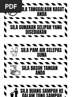 Sila tanggalkan kasut anda sebelum memasuki rumah tamu ini. Anda sila buang sampah ke dalam tong sampah ; Pvc floor sticker signboard dimension: Air bawah tanah nie mmg sejuk sgt. Sila tanggalkan kasut anda di sini, maksudnya adalah mohon lepaskan alas kaki .